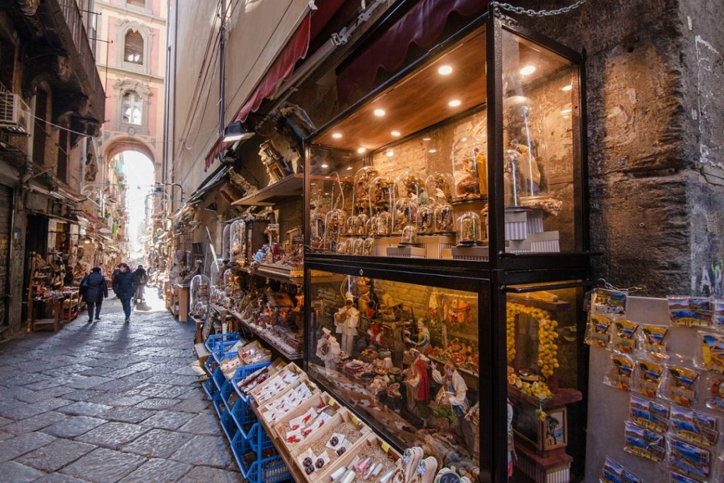 Nel cuore di Napoli, via San Gregorio Armeno è famosa in tutto il mondo per le sue botteghe di presepi tradizionali, dove gli artigiani creano statuine fatte a mano, che fanno parte della cultura natalizia napoletana da secoli. Una passeggiata lungo questa affascinante strada permette ai visitatori di immergersi nell’atmosfera magica della città e di scoprire il folklore che la caratterizza.